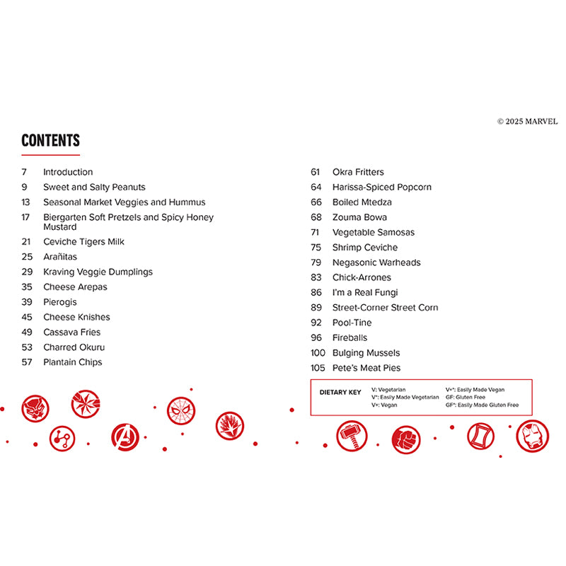 BITE-SIZE AND DELICIOUS: This pocket-size cookbook is the perfect impulse buy and includes delicious snack recipes from our best-selling Marvel cookbooks, Marvel: Spiderman: The Official Cookbook, Marvel's Black Panther: The Official Wakanda Cookbook, Avenger's Campus: The Official Cookbook, and Marvel: Cooking with Deadpool.
