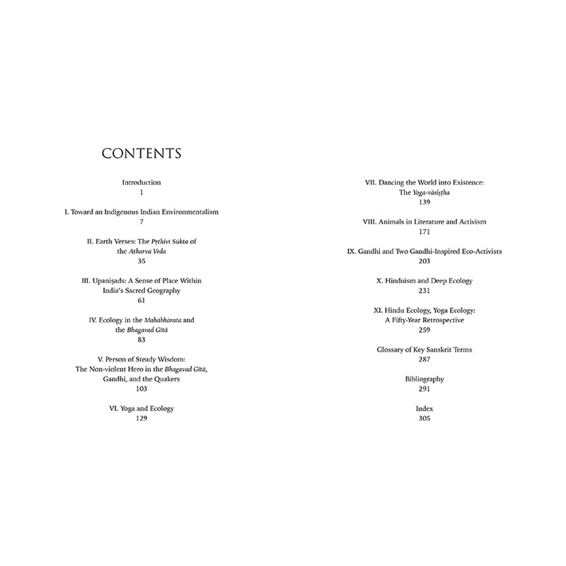 The Vedas and early Upanisads signal the centrality of Earth-awareness in early India. The ethics of Yoga provide guidelines for developing a healthy relationship with the modern ills of over-consumption. Meditation practices as described in the Yoga-vasistha help develop a sense of intimacy with one’s body, with other persons, and with the larger ecosphere. In the modern period, Mahatma Gandhi initiated a thoroughgoing economic critique that helped inspire India’s many contemporary eco-activists including Vandana Shiva, M.C. Mehta, the late Anil Agarwal, and Sunderlal Bahuguna as well as communities including Govardhan Ecovillage and Bija Vidyapeeth.