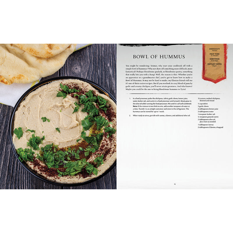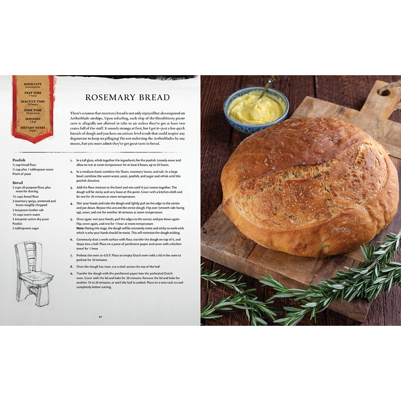 60+ RECIPES FOR ANY ADVENTURER: Follow this intricate guide to make food for every occasion, from traveler’s snacks to feasts fit for a warrior. Enjoy mouth-watering appetizers, breads, salads, soups, sides, and main courses worthy of their own tales, plus delectable desserts and thirst-quenching drinks.