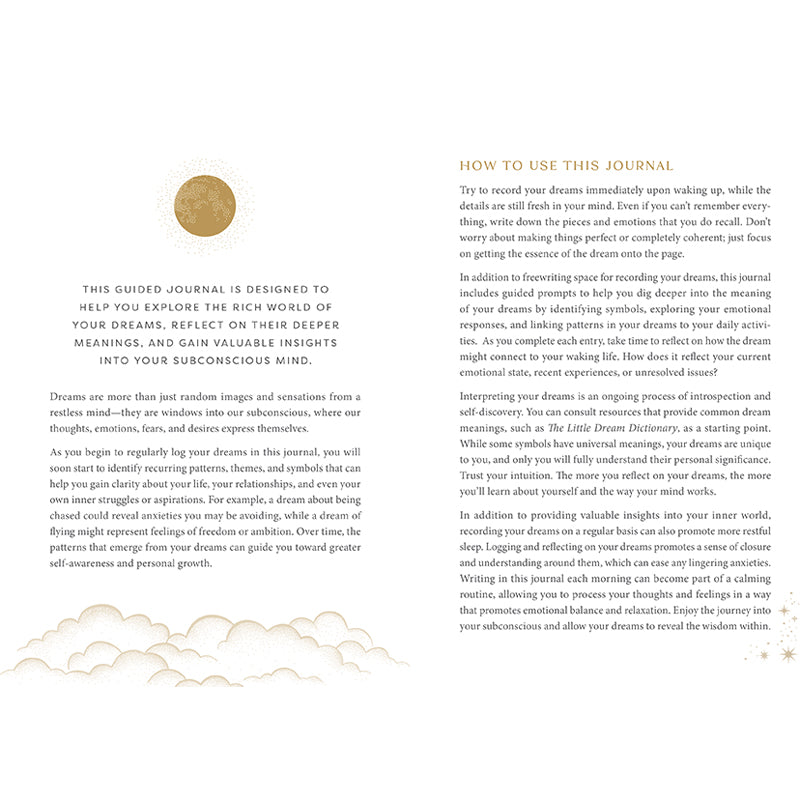 Capture your nightly dreams to unlock deeper insights into your subconscious and yourself. Featuring 90+ beautifully designed entries, this guided journal is your personal space to log your dreams and what they mean to you. Explore your subconscious as you track all of the details, symbols, and emotions in every one of your dreams. Introspective prompts inspire reflection and analysis of your dream experiences. Identify patterns and common symbols in your dreams, find out why you dream the way you do, and improve your nightly rest. With The Little Dream Journal by your bedside, you will embark on a journey of self-discovery and decode the language of your subconscious.