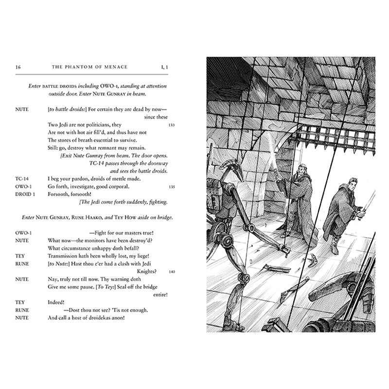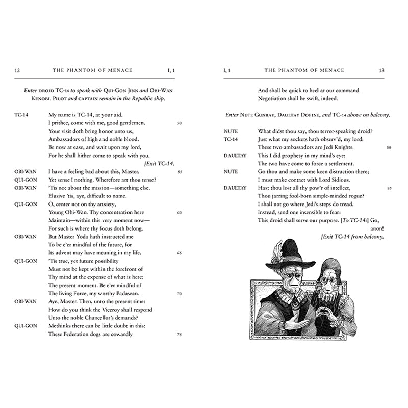 Experience the story of The Phantom Menace all over again, now with all the drama and prestige of Shakespearean theater! Stunning text lovingly and accurately rendered in the meter and style of the Bard himself includes reimagined dialogue from each character from the movie, stage directions, and plenty of Easter eggs, all alongside twenty gorgeous woodcut illustrations that put an Elizabethan twist on iconic Star Wars characters.